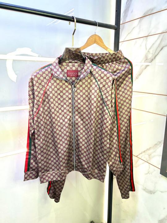 Gucc i Monogram Allover Print Super Premium Grey Track Suit With Brand Carry Bag Packing F3379-GY