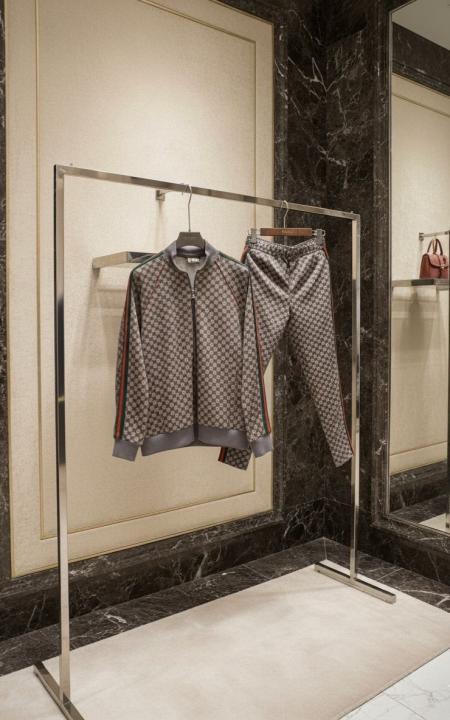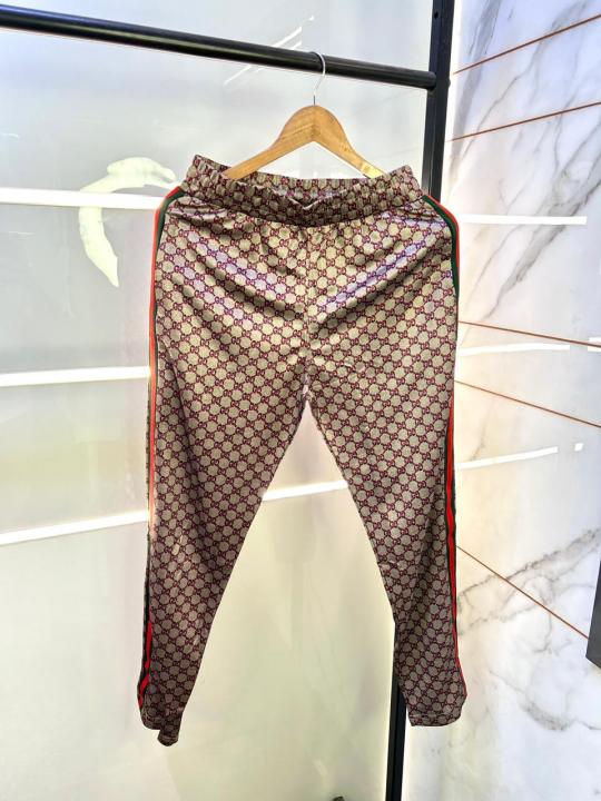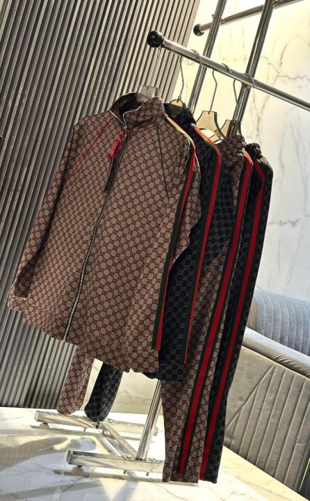 Home Premium Track Suits Gucc i Monogram Allover Print Super Premium Grey Track Suit With Brand Carry Bag Packing F3379-GY