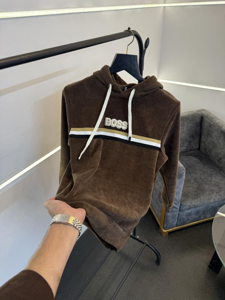 Home Hoodies Hugoboss brown imported hoodie with embroidery logo and two side pocket
