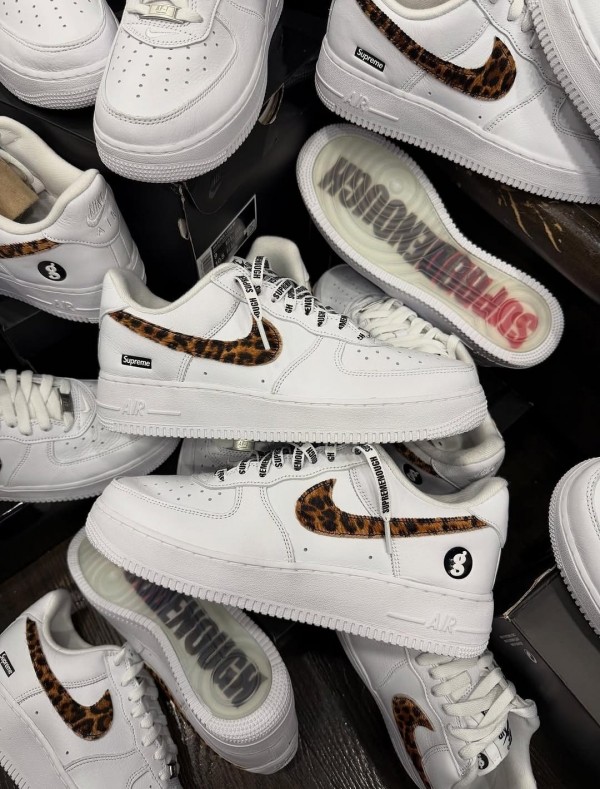 Supreme_ GOODENOUGH x Nikke AirForce 1 Low SP White Cheetah Print